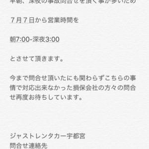 深夜3時まで営業中ジャストレンタカー宇都宮 おかげさまで大好評、問合せ多数でクルマが追いつきませんm・・・ ・・・